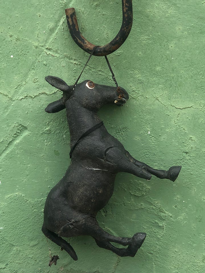 On to a lighter note, animals making their nests in strange places! I found this crazy-eyed plastic donkey hanging inside the hibiscus bush not long after we moved in. I felt he shouldn't be hiding, so hung him above the hose wheel where he can make me smile everytime I do the watering. Well who'd have known that wasps would make their home up the poor donkey's arse, maybe that's why he looks so crazy-eyed!! Unfortunately I don't have photographic proof of the wasps, Tom has been playing “Man vs Wasp” around the garden and got rid of the nest before I got a photo. However, he did I'm pleased to say, not get rid of our second unusual nest.